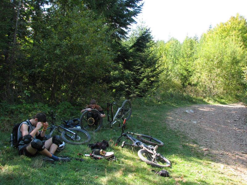 Zawoja 2006 -- Ostatni szybki zjazd... co ja mowilem o hamowaniu na kamieniach ?:) Ostatni snake Kuba 2, Szosa 2, Maciek 1 ! :)